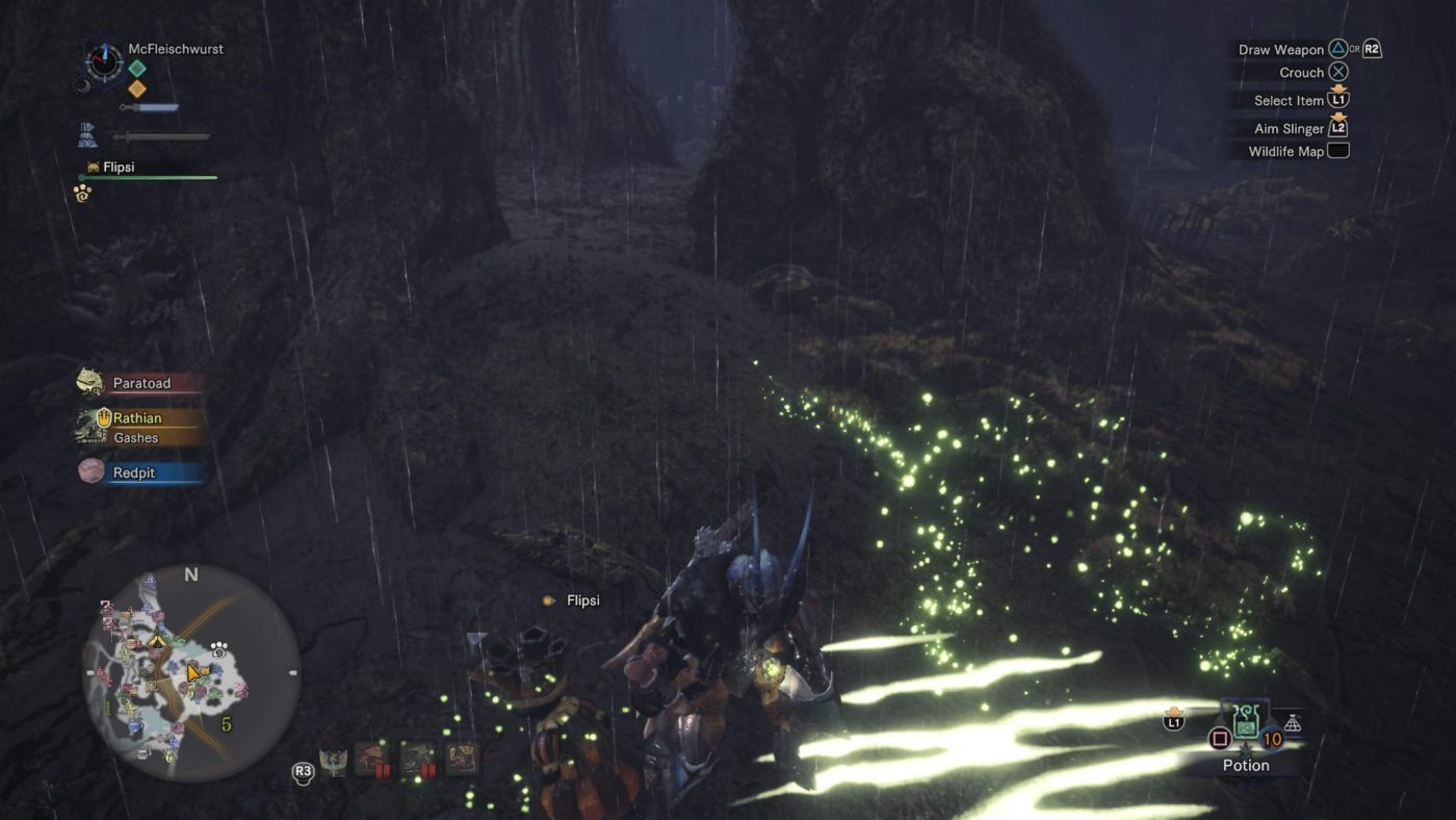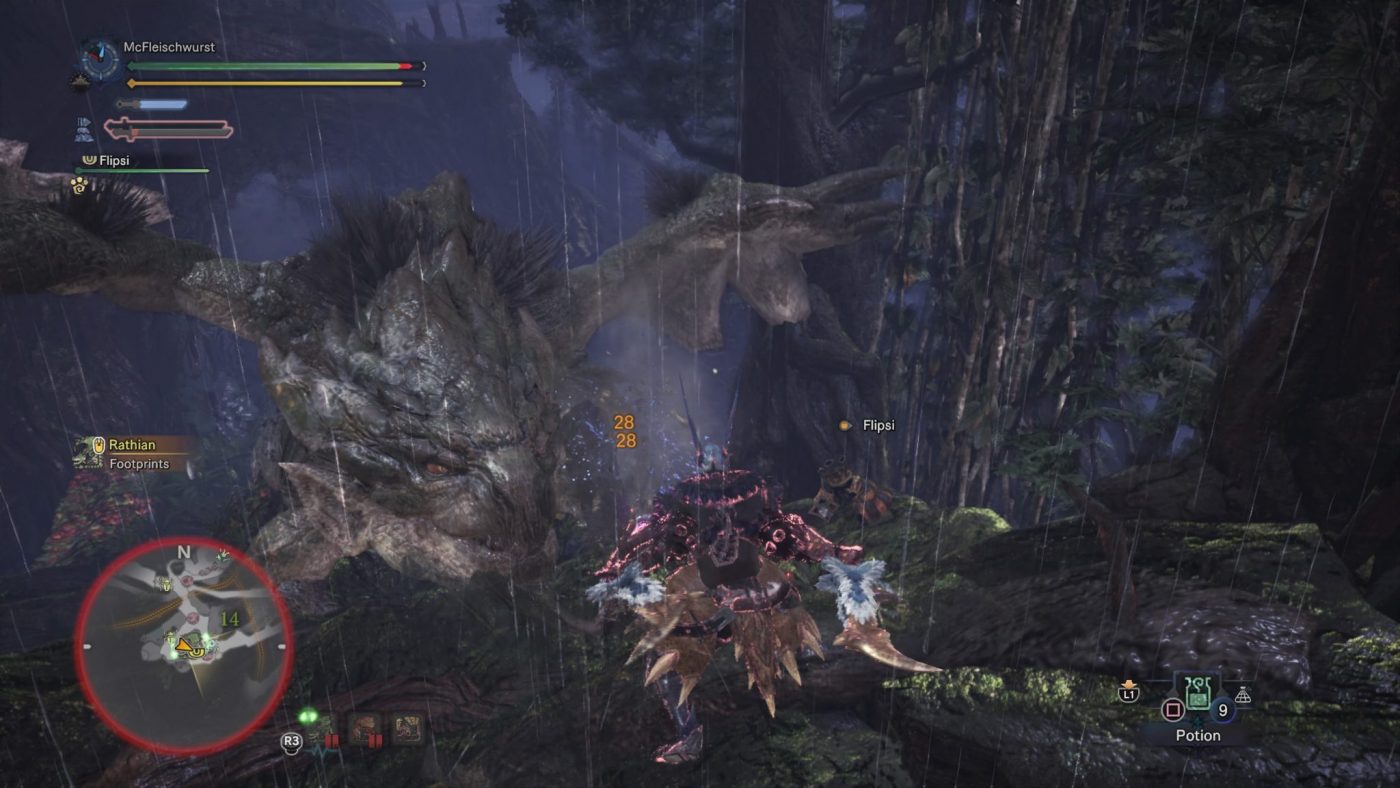 Ich erinnere mich an eine Jagd, bei der ich mit zwei Freunden ein Rathalos im Wald erlegen sollte. Der riesige Drache ist für sich alleine ein formidabler Feind, jedoch sollte es kein simpler 3 vs. 1-Kampf werden. Stattdessen entwickelte sich die Jagd zu einem Kampf mit vier Fronten und einer wilden Prügelei durch den ganzen Wald, als der dinoartige Anjanath und der flinke Tobi-Kadachi sich einmischten. Frenetisch wechselte unser Team von der Rolle der Jäger zu den Gejagten, dann zu faszinierten Zuschauern oder opportunistischen Assassinen. Rund 45 Minuten lieferten wir uns Verfolgungsjagden mit den drei Monstern, die teils episch waren und zum Teil an die Benny Hill Show erinnerten. Ein großes Chaos? Sicher, aber ein unfassbar spaßiges!